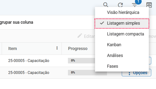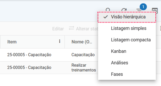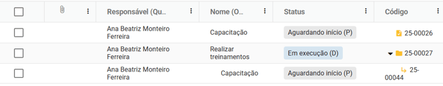 💡Essa visão é ideal para quem precisa consultar rapidamente o status das ações, comparar informações ou realizar atualizações em lote, sem a necessidade de expandir estruturas hierárquicas.