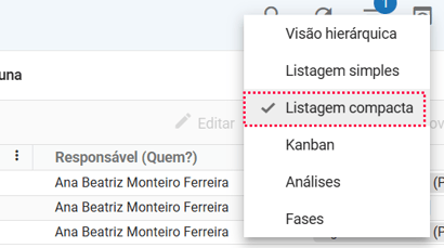 A Listagem Compacta exibe as ações de forma mais condensada, permitindo visualizar mais registros por tela sem perder clareza. É indicada para: