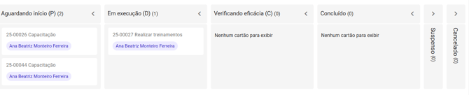 - Aguardando início : ações planejadas, mas ainda não iniciadas.
