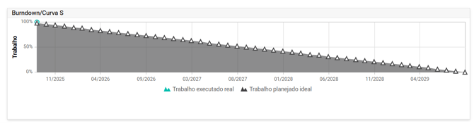 💡 Se a linha estiver descendo muito lentamente, pode indicar que o projeto está em risco de atraso.