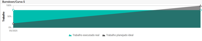 - Linha cinza: representa o progresso planejado — ou seja, o que deveria ter sido concluído em cada período.
