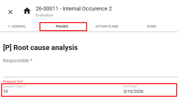 The modification of deadlines and responsible parties within the occurrence may vary depending on the type of rule configured: